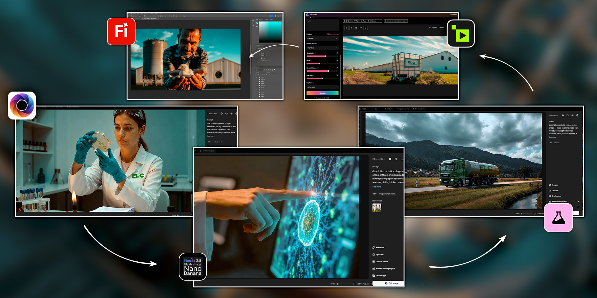 Фотореференси та композиції генерувалися через Imagen 4 Ultra, Nano Banana і Seedream 4K, після чого проходили ретуш і корекцію у Firefly та інструменти Freepik.