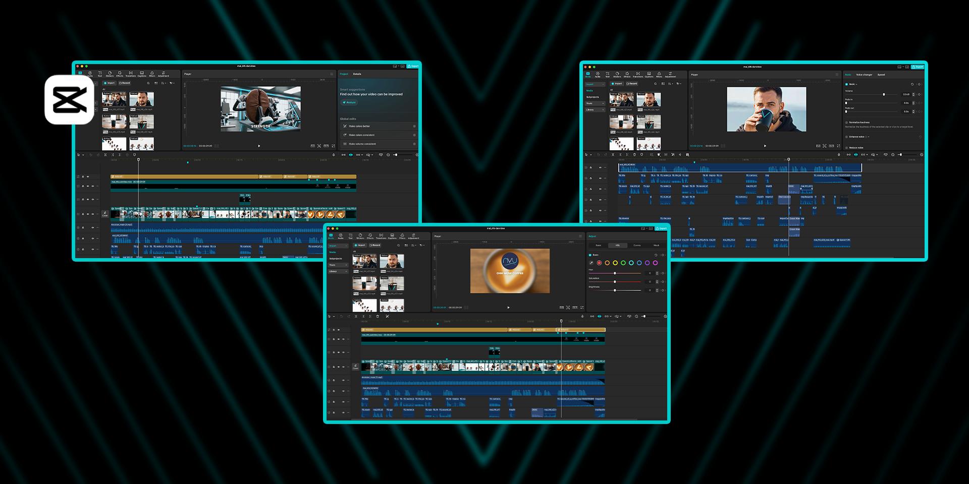 Фінальний монтаж виконувався у CapCut Pro з подальшою стилізацією, трекінгом логотипів та кольорокорекцією в After Effects. Усі три відео були зведені у спільну систему кольору, ритму та світлових рішень, що сформувало єдиний впізнаваний стиль Alive.