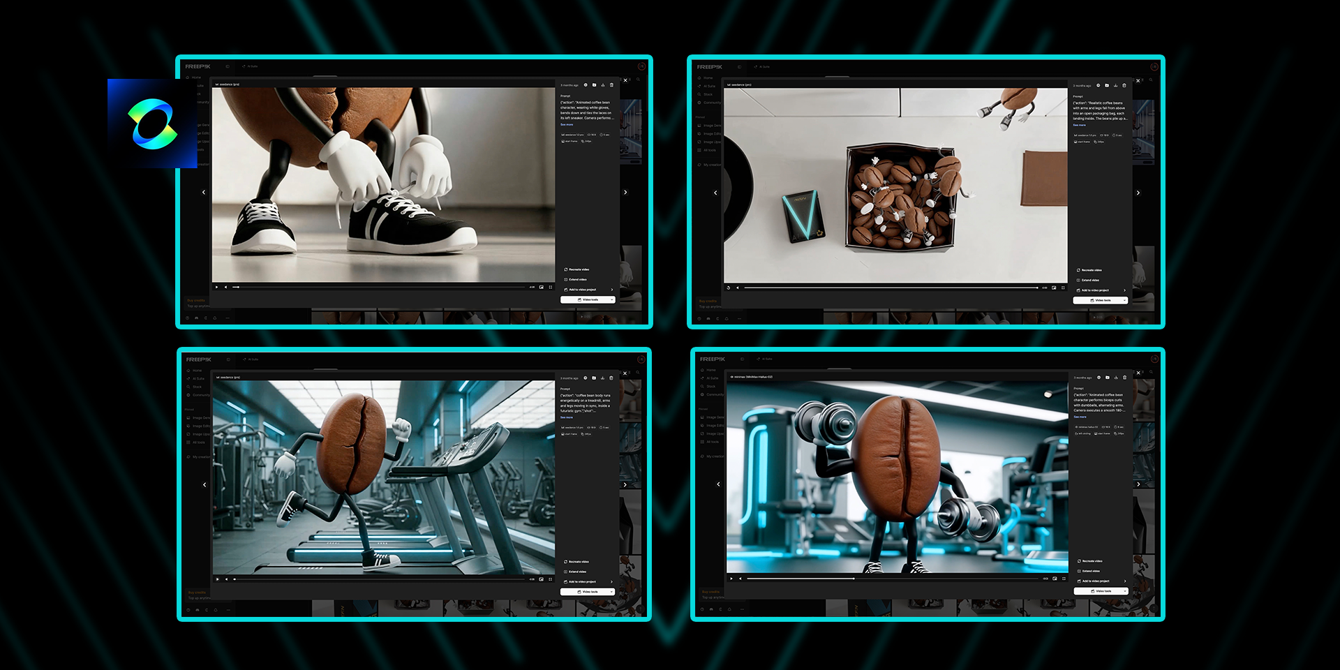 Персонажі створювалися на базі Runway Reference із точним контролем освітлення та міміки, а дрібні елементи — на кшталт рук, чашок чи кавових зерен — доопрацьовувалися у 3D-масках і бібліотеках Freepik.