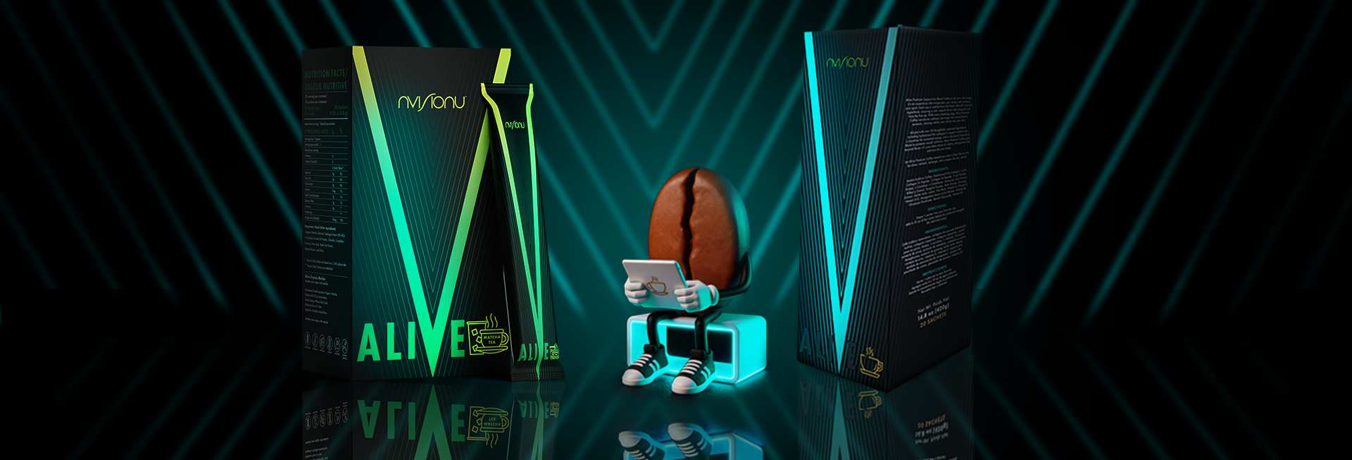 Alive — це метафора сучасної людини, яка не шукає баланс між роботою та відпочинком, а створює його сама. Alive Coffee уособлює дію, швидкість і фокус. Alive Matcha — ясність, спокій і контроль.