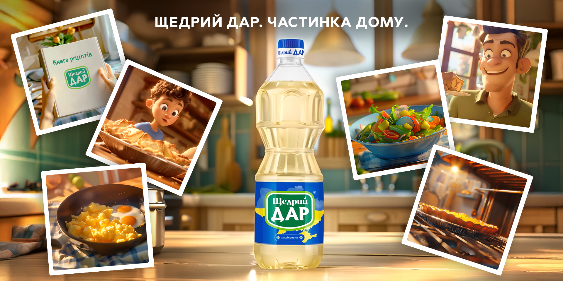 За основу взяли вже готову аудіодоріжку радіоролика. Під слоган «Частинка дому» народилась ідея показати сімейну атмосферу приготування їжі вдома, де олія «Щедрий Дар» є природною частиною родинного затишку.